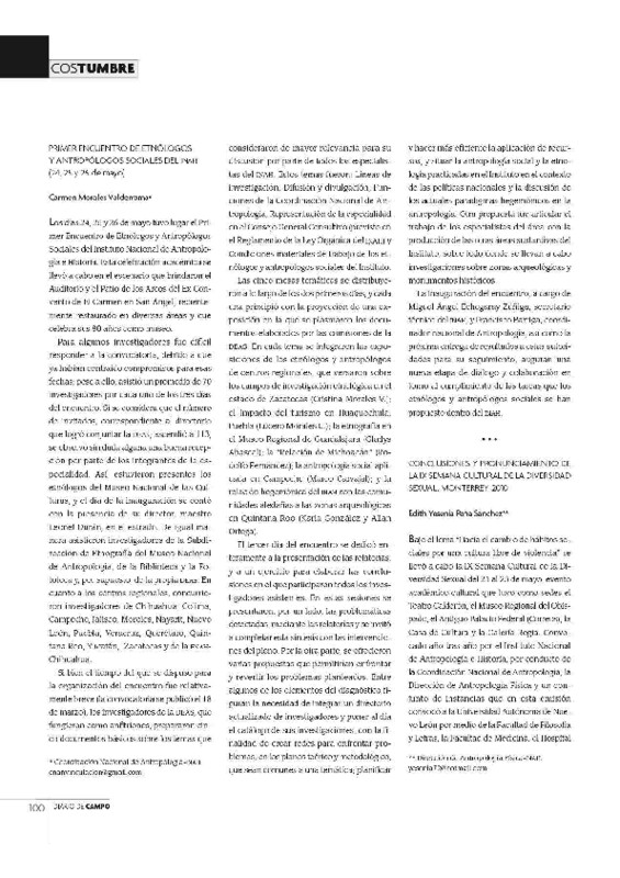 - Diario de Campo. Comida para todos: alimentación y cultura N°. 1 Nueva época Año 1 (2010) julio-septiembre