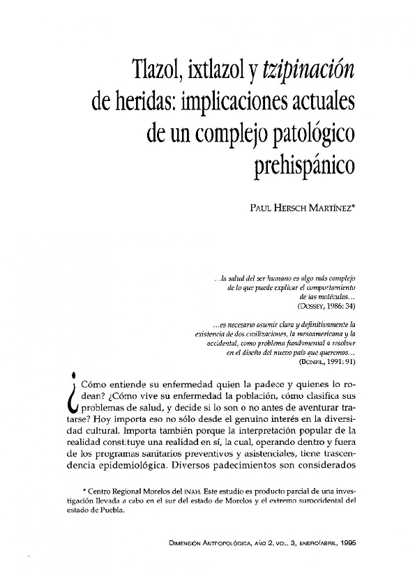 - Tlazol, ixtlazol y tzipinación de heridas: implicaciones actuales de un complejo patológico prehispánico