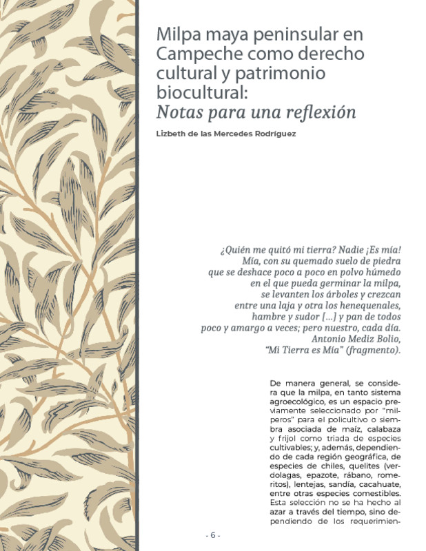 - URL Milpa maya peninsular en Campeche como derecho cultural y patrimonio biocultural: notas para una reflexión. Glifos Núm. 28 (2021)