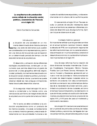 - URL La arquitectura de producción como reflejo de la situación social, política y económica de Tlaxcala en el siglo XIX. La Chíquinah Núm. 13 (2021)