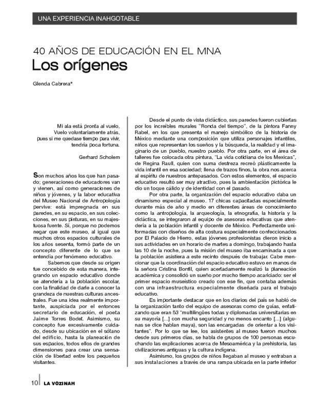- URL Una experiencia INAHGOTABLE. 40 años de educación en el MNA. Los orígenes. La voz INAH. Núm. 6 (2004)
