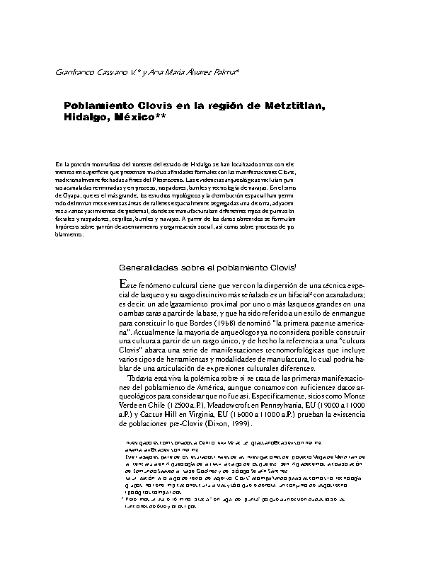 - Poblamiento Clovis en la región de Metztitlan, Hidalgo, México