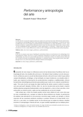 En este artículo se proponen algunas pistas para explorar las articulaciones entre determinados planteamientos recientes en antropología del arte y otras vertientes de estudios sobre el performance. La atención se centra en reflexiones acerca de la imagen y la performatividad –formuladas en un campo disciplinario y el otro–, pues de éstas se derivan consideraciones relevantes sobre el ritual, las relaciones entre ritual y arte, y ritual y teatro –en sus modalidades de teatro posdramático y teatro performativo o a-formativo–. Desde el punto de vista de los autores, en torno a estas reflexiones se anuda uno de los diálogos más fructíferos entre ambas disciplinas.