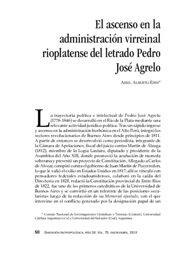 - El ascenso en la administración virreinal rioplatense del letrado Pedro José Agrelo