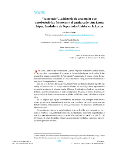 - “Ya no más”. La historia de una mujer que desobedeció las fronteras y al patriarcado: Ana Laura López, fundadora de Deportados Unidos en la Lucha