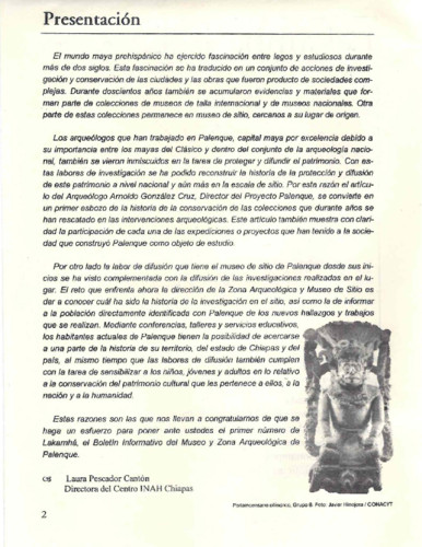 - URL Presentación. Lakamha' Boletín informativo del Museo de Sitio y la Zona Arqueológica de Palenque. Núm. 1 (2001)