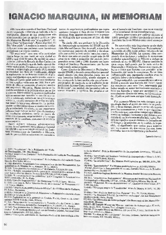 - URL Ignacio Marquina, In Memoriam. Cuicuilco Revista de la Escuela Nacional de Antropología e Historia. Primera época Vol. 2 Núm. 06 (1981)