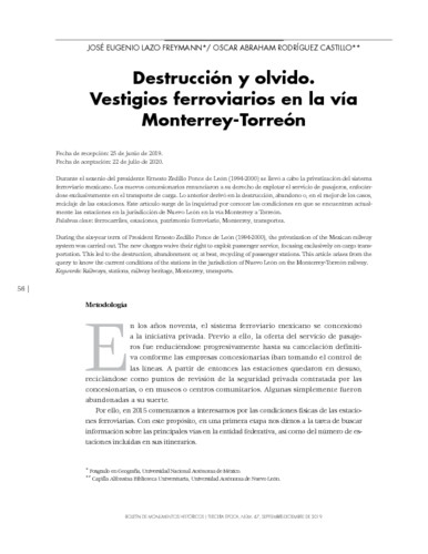 - URL Destrucción y olvido. Vestigios ferroviarios en la vía Monterrey-Torreón. Boletín de Monumentos Históricos Núm. 47 (2019)