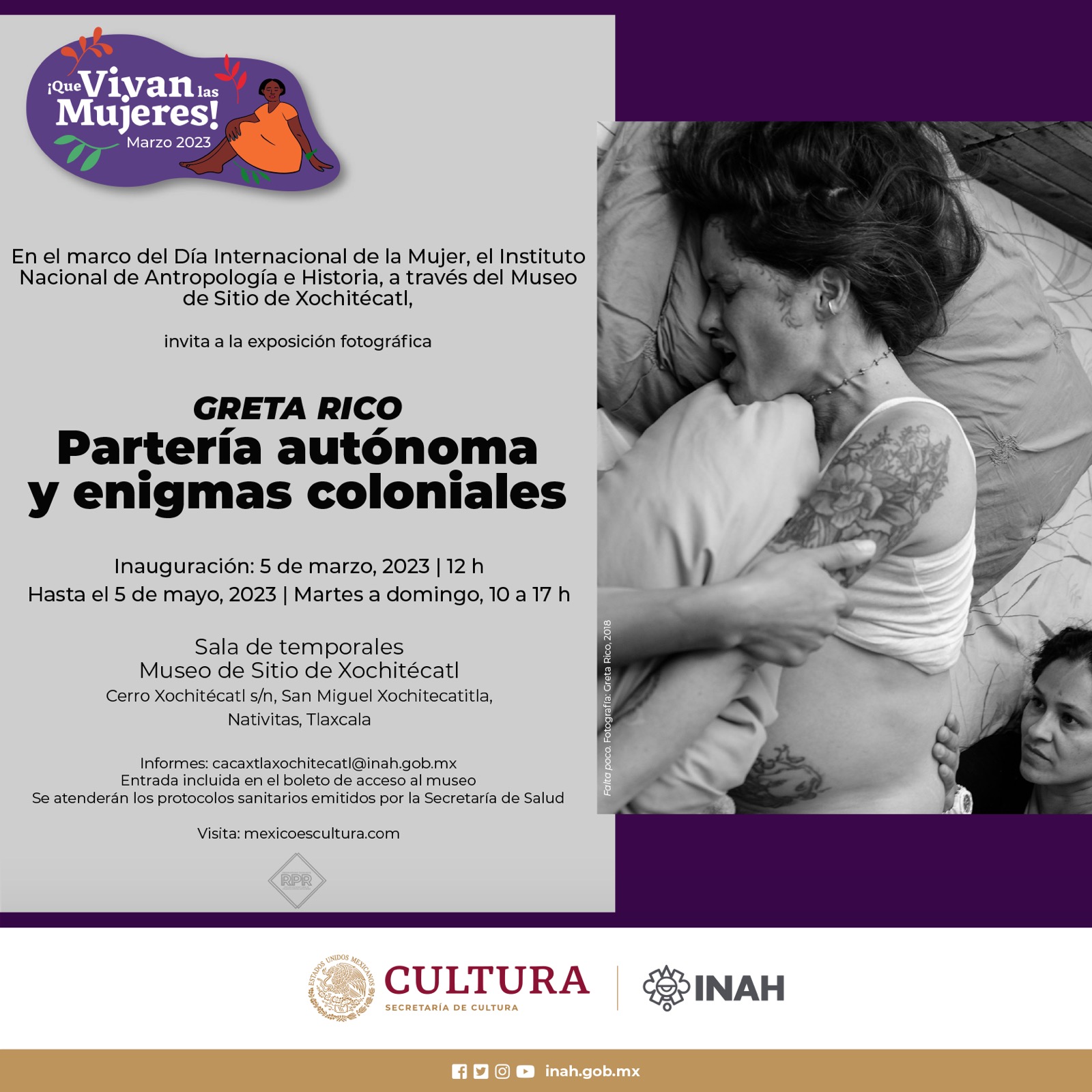 La muestra estuvo conformada por 29 fotografías en blanco y negro, procedentes del proyecto documental “Parteras urbanas” iniciado por la fotografa Greta Rico hace cinco años. Con la intención de retratar la casi desconocida labor de parteras que atienden en la Zona Metropolitana del Valle de México. La sede de esta exposición fue el Museo de Sitio de Xochitécatl.