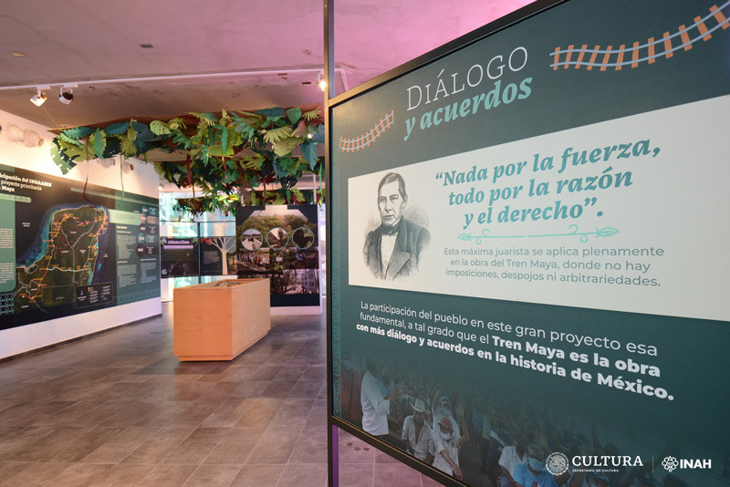 En esta exposición se destaco el trabajo de de salvamento arqueológico llevado a cabo por especialistas del INAH a lo largo de los 1,554 kilómetros de vías sobre los que correrá el tren en su paso por los estados de Chiapas, Tabasco, Campeche, Yucatán y Quintana Roo, así como las tareas de atención en 27 sitios patrimoniales, incorporados al Programa de Mejoramiento de Zonas Arqueológicas (Promeza).