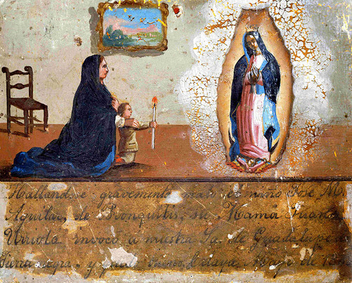 - Hallandose gravemente mal el niño José Ma. Aguilar de Bronquitis su Mamá Francisca Urriola invocó a nuestra Ya de Guadalupe de Tierras negras [...] Mayo de 1852.