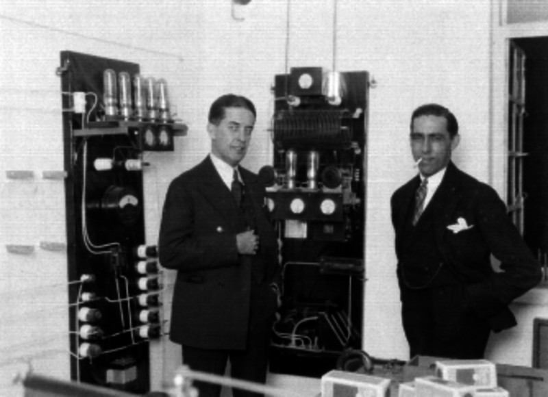 Raúl Azcárraga Vidaurreta y otro hombre en una radiodifusora