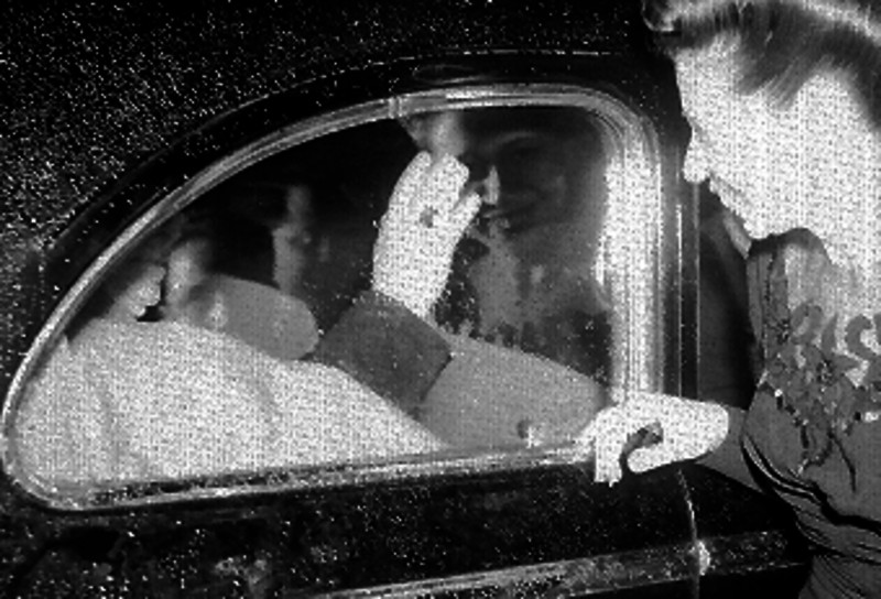 Villanueva, cardenal, en un automóvil despidiéndose de una mujer