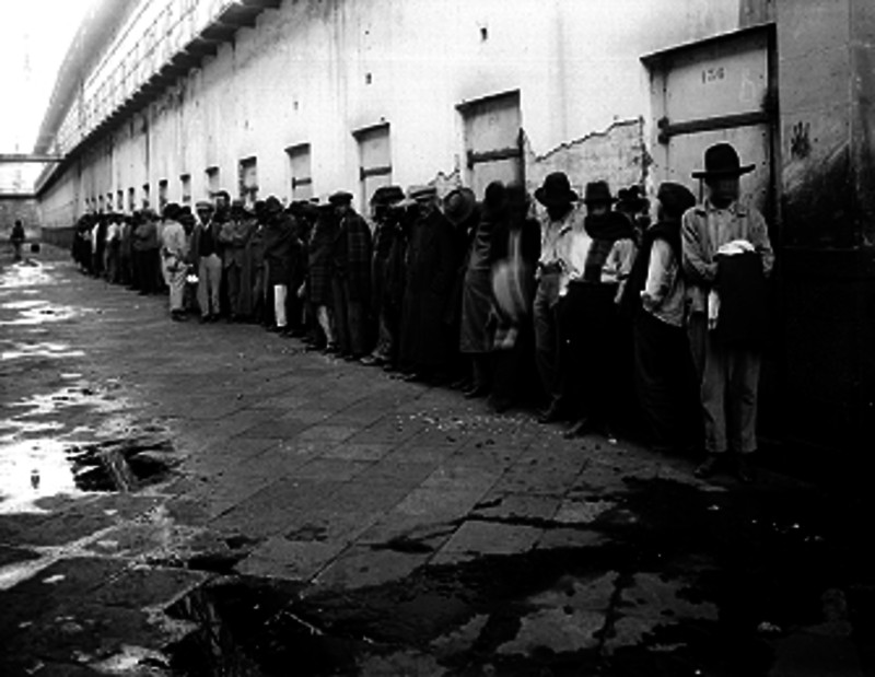 - Presos formados en la crujía de la penitenciaría del Distrito Federal.