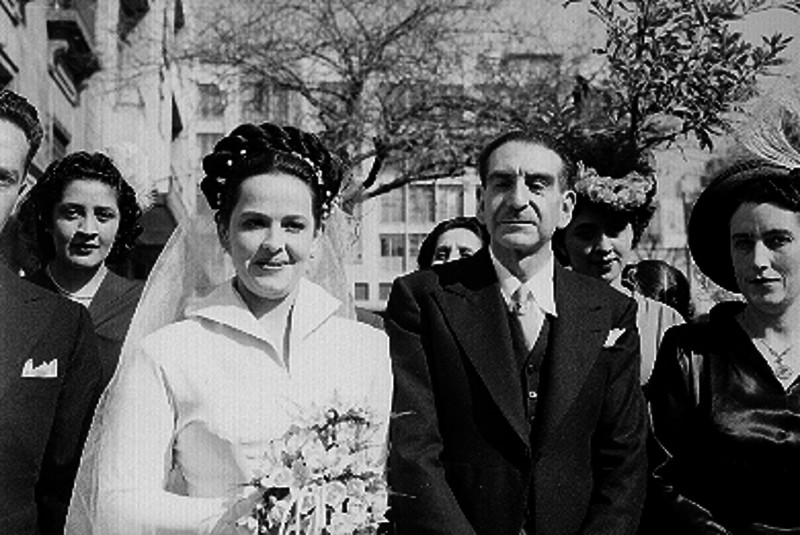 - Pareja de novios acompañados por familiares y amigos, retrato