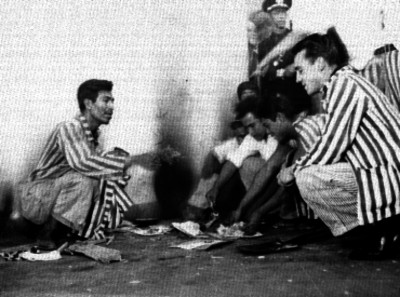 - Presos repartiendose una hierva envuelta en un papel.