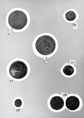 Monedas españolas exhibidas en la sala de Numismática del Museo Nacional de Historia