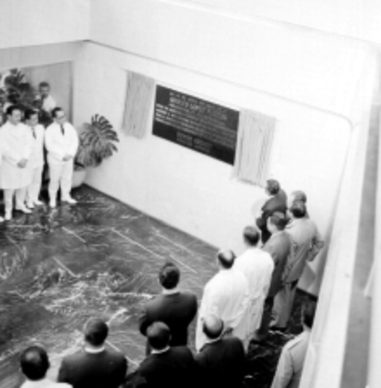 - Adolfo López Mateos después de develar placa inaugural de la Unidad Gineco-obstetricia del Centro Médico ""La Raza""