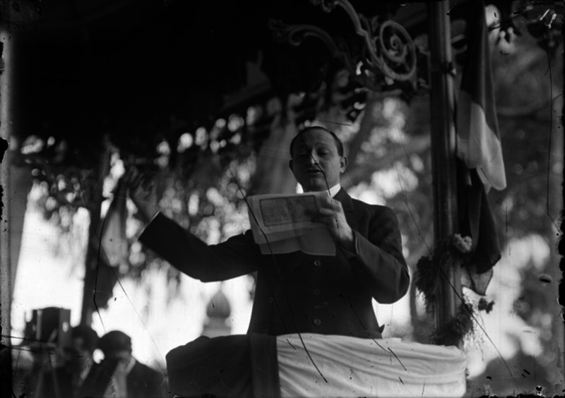 - Antonio Mediz Bolio, haciendo uso de la palabra, durante una ceremonia pública.