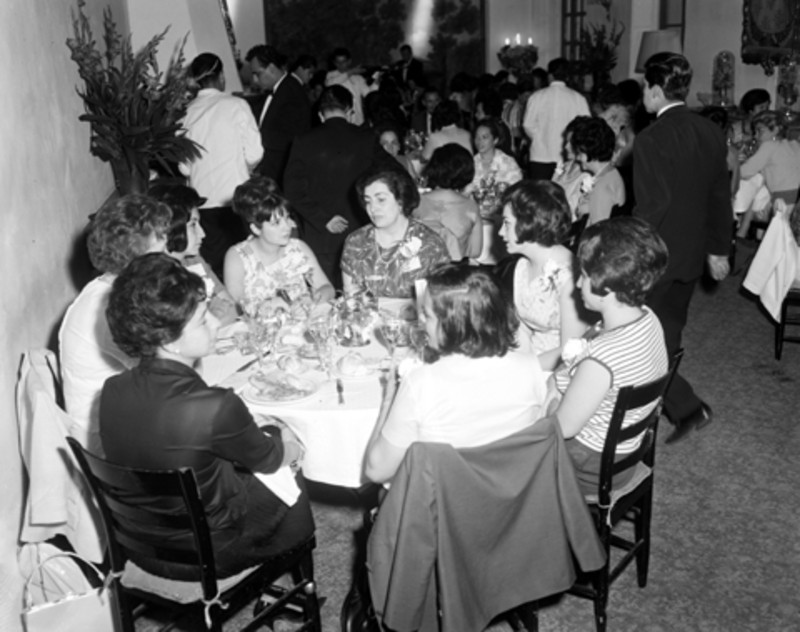 - Mujeres reunidas durante banquete en un salón
