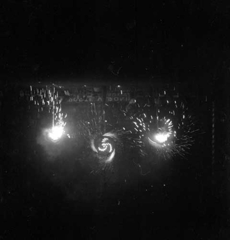 Juegos pirotécnicos en el festival deportivo por la campaña eletoral de López Mateos.