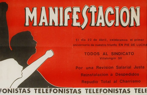 - Convocatoria a manifestación. Por el primer año en pie de lucha. Por una revisión salarial Justina, reinstalación de los despedidos, repudio total al chartismo.