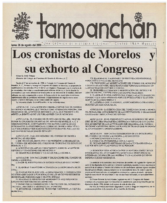 - Tamoanchan. 2000-08-28 Año 13 (2000) agosto