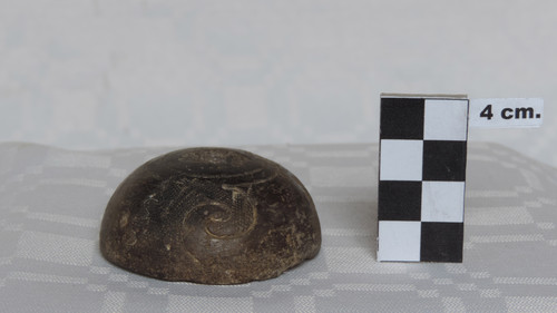 - Base recta cuerpo curvo convergente con perforación al centro boca circular borde media ojiva