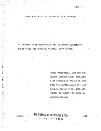 - El proceso de desintegración de los ejidos colectivos en el Valle del Carrizo, Sinaloa (1970 - 1975)