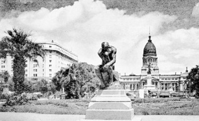 "Plaza del Congreso", escultura el Pensador, vista parcial, tarjeta postal ...