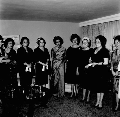 Indira Ghandi y otras mujeres durante una reunión en una habitación, retrato ...