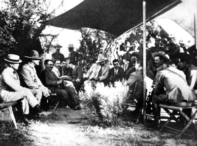 Alvaro Obregón, Francisco Villa y militares durante reunión en Ciudad Juárez ...