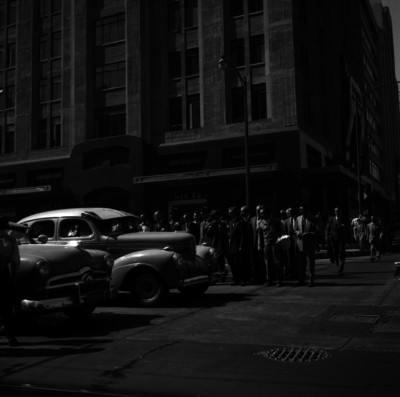 Gente de condición humilde escuchando m'sica de viento en la esquina de las calles de 5° calle de Galeana y 2° calle de la Magnolia ...