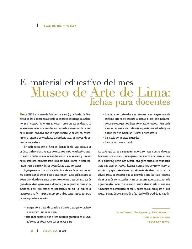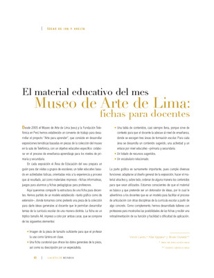 - El material educativo del mes. Museo de Arte de Lima: fichas para docentes