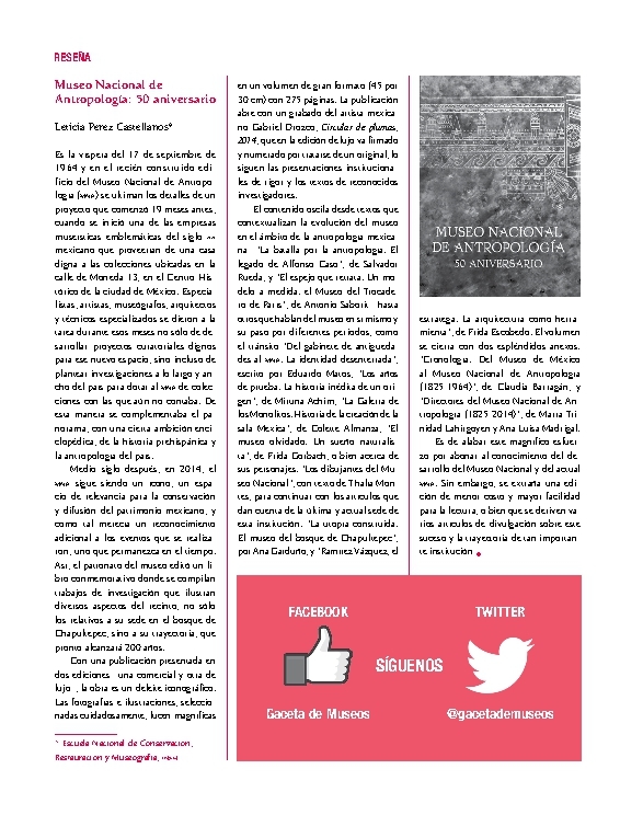 - Número de revista Gaceta de Museos. A 150 años del Museo Público de Historia Natural, Arqueología e Historia I Num. 63 (2015-2016)
