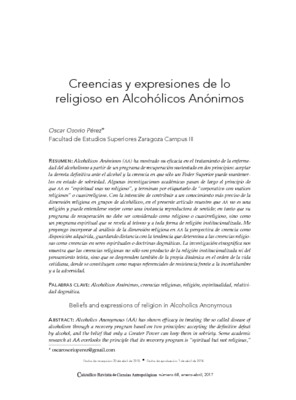 - Creencias y expresiones de lo religioso en Alcohólicos Anónimos