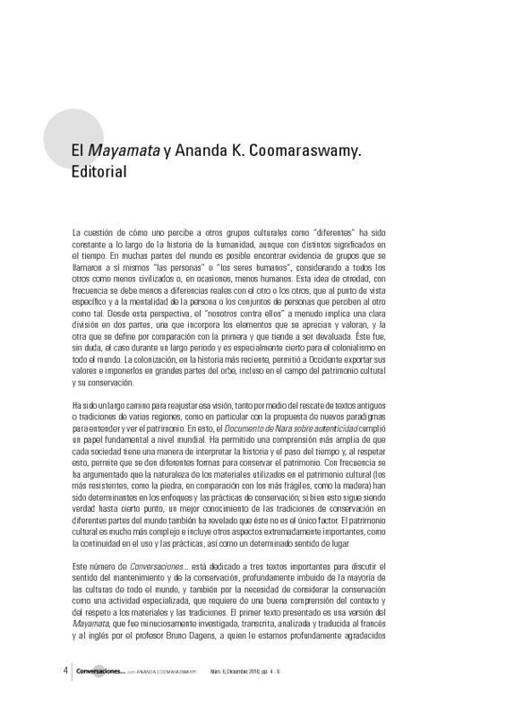 Editorial. El Mayamata y Ananda K. Coomaraswamy