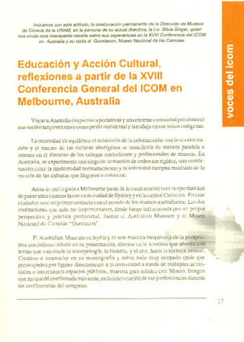 - Educación y Acción Cultural, reflexiones a partir de la XVIII Conferencia General del ICOM en Melbourne, Australia