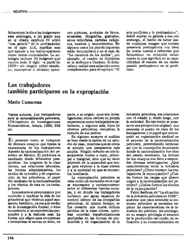 - Varios autores, Los trabajadores ante la nacionalización petrolera, CIH-Instituto de Investigaciones Humanísticas, Jalapa, 1988, 269 pp.