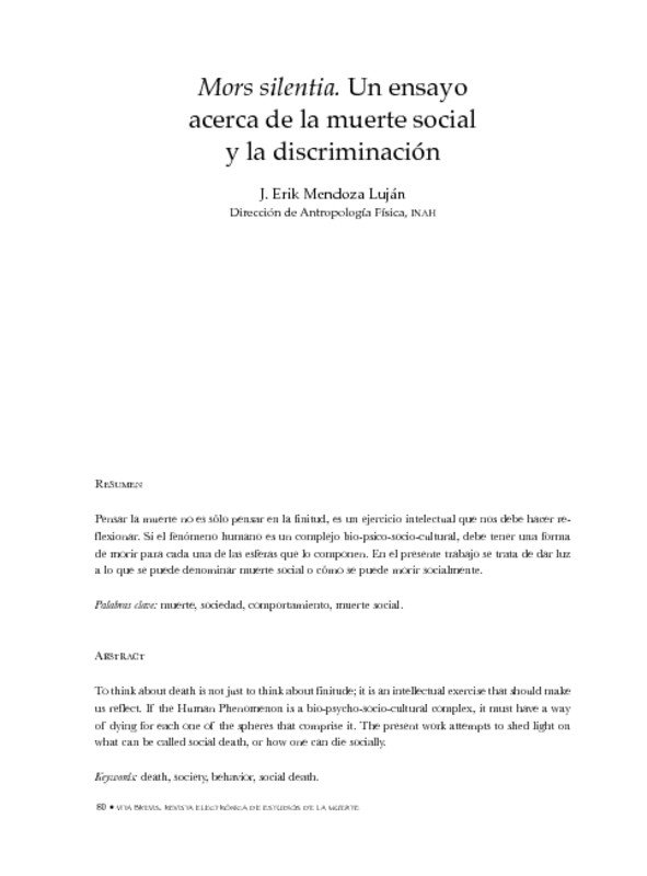 - Mors silentia. Un ensayo acerca de la muerte social y la discriminación
