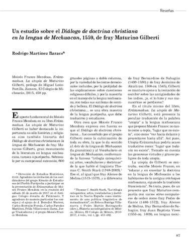 - Un estudio sobre el Diálogo de doctrina christiana en la lengua de Mechuacan, 1559, de fray Maturino Gilberti