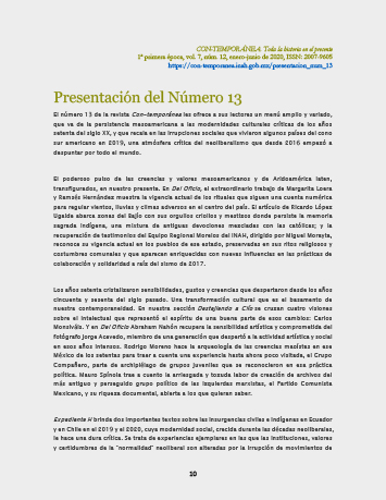 - Número de revista Con-temporánea. Toda la historia en el presente Núm. 13 Primera época Vol. 7 (2020) enero-junio