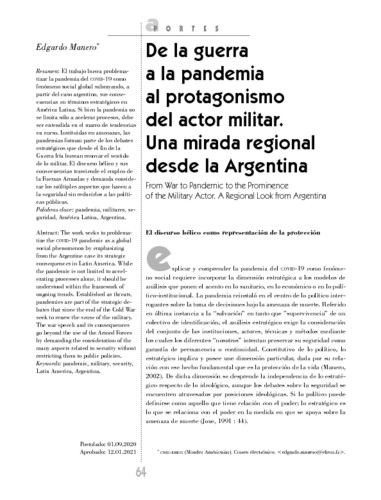 - De la guerra a la pandemia al protagonismo del actor militar. Una mirada regional desde la Argentina
