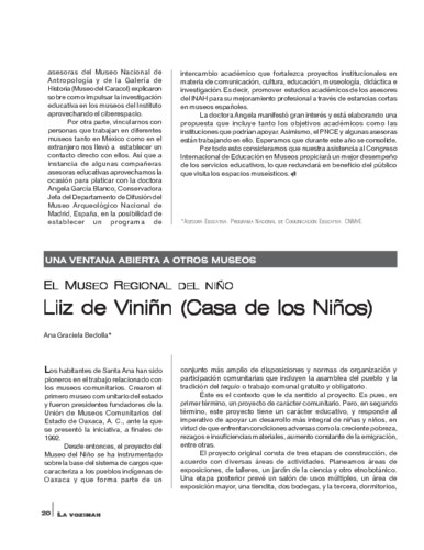 - URL Una ventana abierta a otros museos. El Museo Regional del Niño. Liiz de Viniñn (Casa de los Niños). La voz INAH. Núm. 5 (2004)