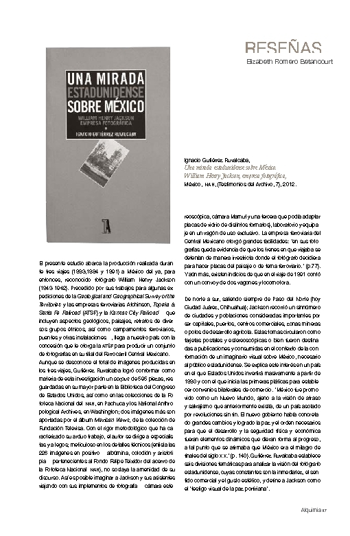 - Ignacio Gutiérrez Ruvalcaba, Una mirada estadunidense sobre México. William Henry Jackson, empresa fotográfica, México, INAH, (Testimonios del Archivo, 7), 2012.
