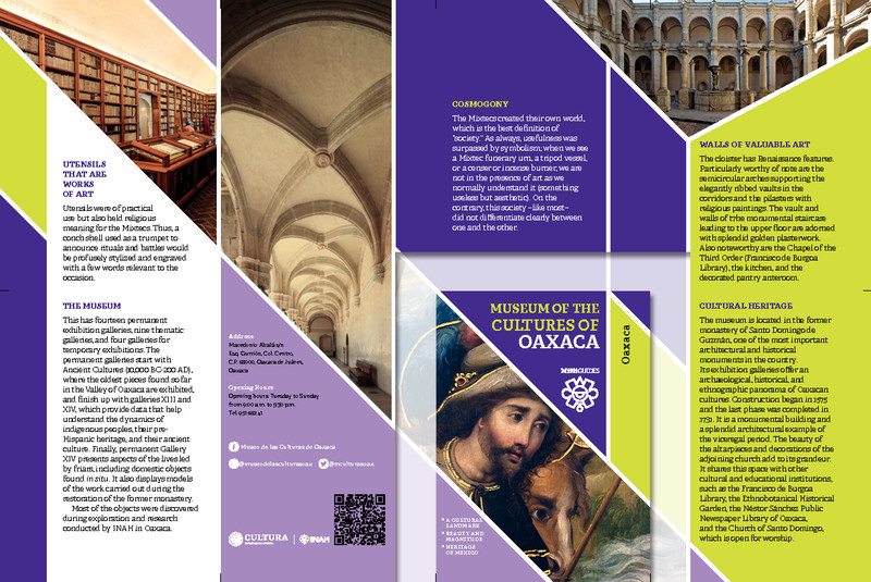 - The museum is located in the former monastery of Santo Domingo de Guzmán, one of the most important architectural and historical monuments in the country. Its exhibition galleries offer an archaeological, historical, and ethnographic panorama of Oaxacan cultures. Construction began in 1575 and the last phase was completed in 1731. It is a monumental building and a splendid architectural example of the viceregal period. The beauty of the altarpieces and decorations of the adjoining church add to its grandeur. It shares this space with other cultural and educational institutions, such as the Francisco de Burgoa Library, the Ethnobotanical Historical Garden, the Néstor Sánchez Public Newspaper Library of Oaxaca, and the Church of Santo Domingo, which is open for worship.