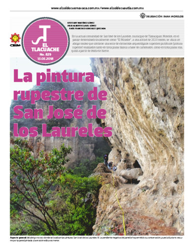 - La pintura rupestre de San José de los Laureles por Steffany Martínez Gómez, Raúl Francisco González Quezada. - Patrimonio arqueológico del sureste morelense: la piedra de Axochiapan por Pavel Carlos Leiva García y Judith Galicia Flores.