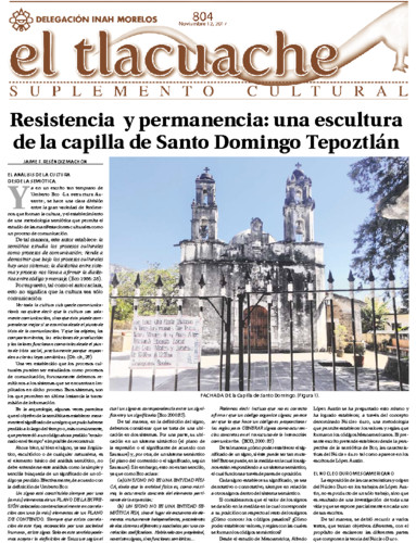 - Resistencia y permanencia: una escultura de la capilla de Santo Domingo Tepoztlán por Jaime F. Reséndiz Machón.