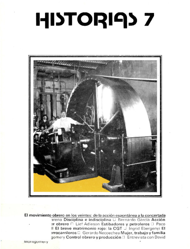 - - Disciplina e indisciplina: los obreros textiles del valle de México en los años veinte por Mario Camarena. - Acción directa y poder obrero de la CROM de Orizaba (1918-1922) por Bernardo García Díaz. - Identidad comunitaria y transformación social: estibadores y petroleros en Tampico (1900-1925) por Lief Adleson. - El breve matrimonio rojo: comunistas y anarcosindicalistas en la CGT en 1921 por Paco Ignacio Taibo II. - El surgimiento del sindicato de trabajadores ferrocarrileros en México por Ingrid Ebergenyi. - Cinco autorretratos y un ensayo: mujer, trabajo y familia en Río Blanco (1890-1950) por Gerardo Necoechea. - El control obrero de la producción de máquinas en los Estados Unidos (Siglo XIX) por David Montgomery. - Entrevista con David Montgomery por Mark Naison y Paul Buhle. - Bibliografía básica para el estudio del movimiento obrero (1918-1930) por Mario Camarena y Gerardo Necoechea.
