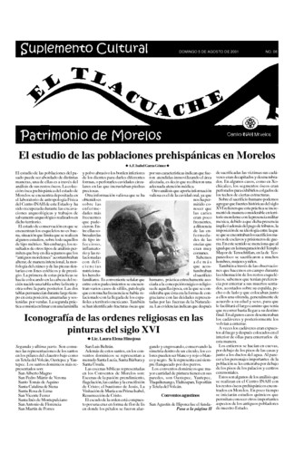 - - El estudio de las poblaciones prehispánicas en Morelos por A.F. Isabel Garza Gómez. - Iconografía de las ordenes religiosas en las pinturas del siglo XVI por Laura Elena Hinojosa. - Historia urbana novohispana del siglo XVI por Doctor Mario Camacho Carmona. - Nuestro patrimonio desconocido por Teresita Loera y Anaite Monterforte. - El Yahuitli por Biol. Margarita Avilés y Biol. Macrina Fuentes.
